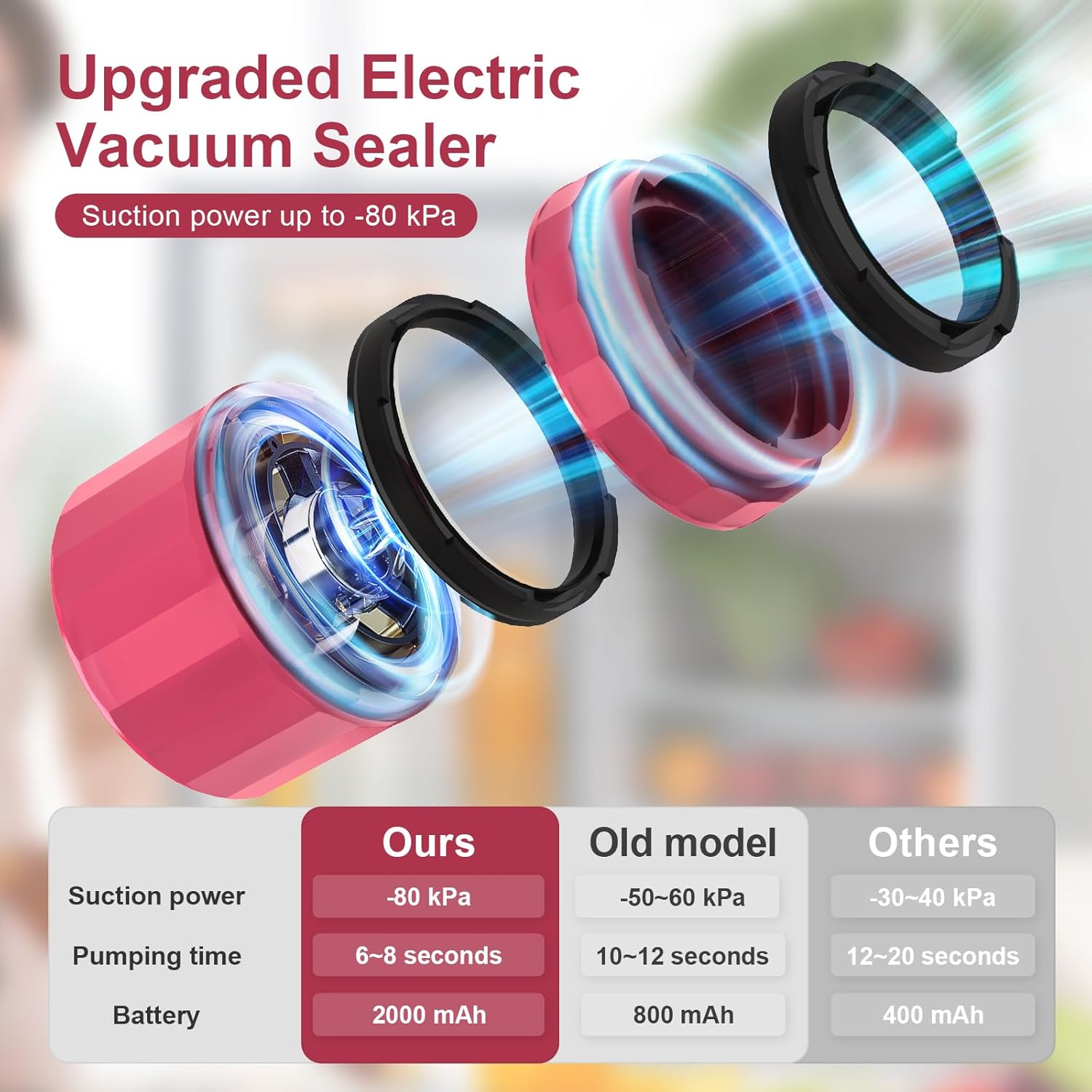 - Upgraded Motor with Powerful Suction – Enhanced performance handles large jar lids with ease, creating optimal vacuum conditions.
